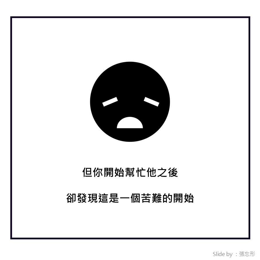 當我主動請助教幫他,他卻跑去跟助教說:「我知道忘形比較喜歡別人啦,我講什麼他都不理我。」