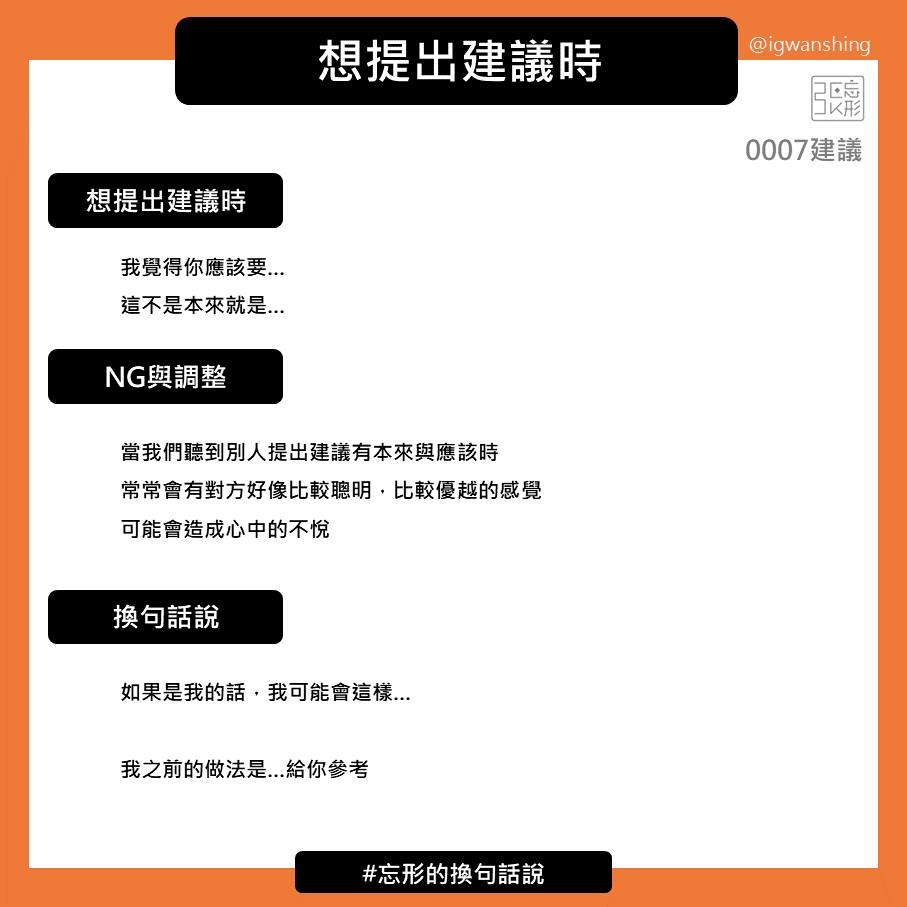 最後說一下,首先是很多朋友說這個系列的幫助很大,我會努力的更新下去。也歡迎你跟我分享你覺得聽起來很不舒服的話,我來嘗試著換句話說給你聽聽看。