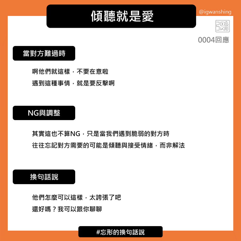 這時候的我們就不只是在解決問題,更能夠把焦點放在對方身上,讓對方感覺到,等等我們要確認的訊息,是因為對方所以非常重要,而不是單純的回應。